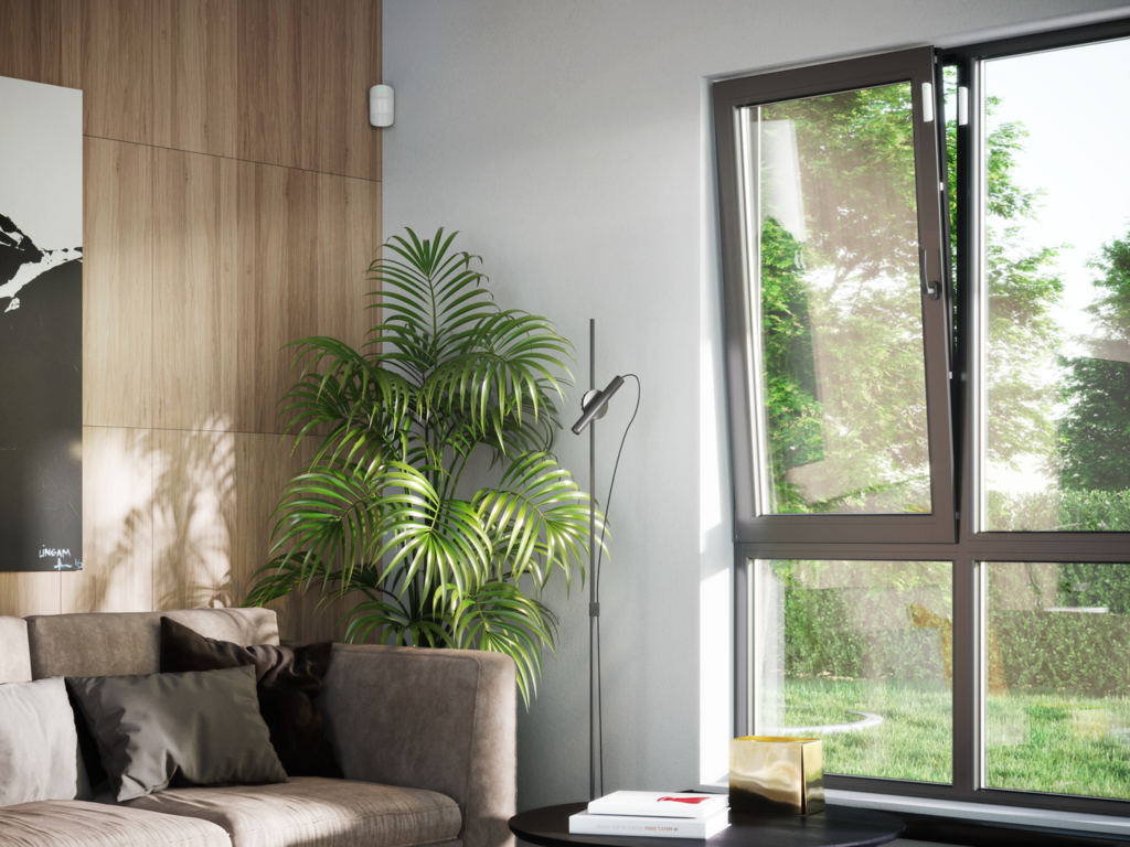 Für die schwerpunktmäßige Überwachung wird ein dualer Bewegungsmelder verbaut, um Täter auch nach einem Zugang über die Glasflächen detektieren zu können.